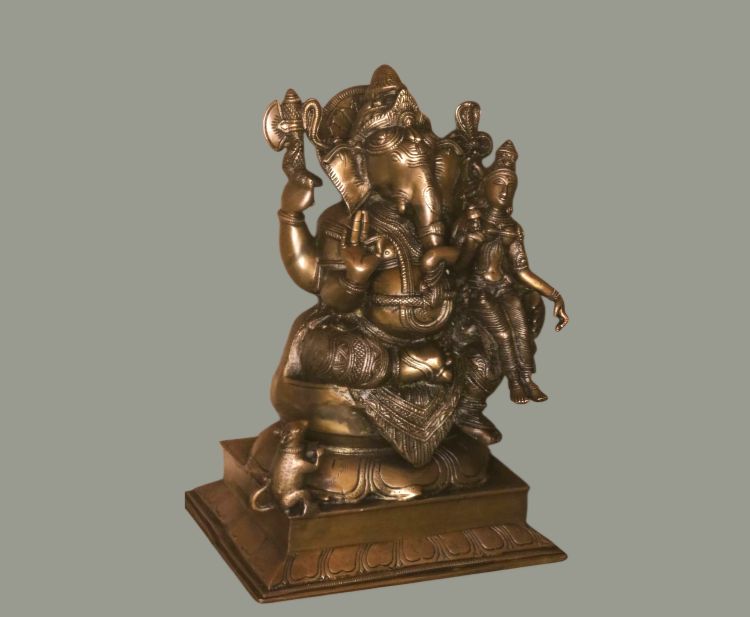 This is a wonderful artwork of Ganesh and Lakshmi, it has a 16-inch height. This idol is a three-dimensional worked bronze idol to get the maximum divine feel.